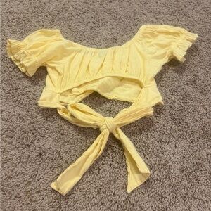 Brighten your wardrobe with this stylish yellow crop top. Featuring a trendy tie front, it's perfect for casual outings. Pair it with your favorite jeans or skirt for a chic look.