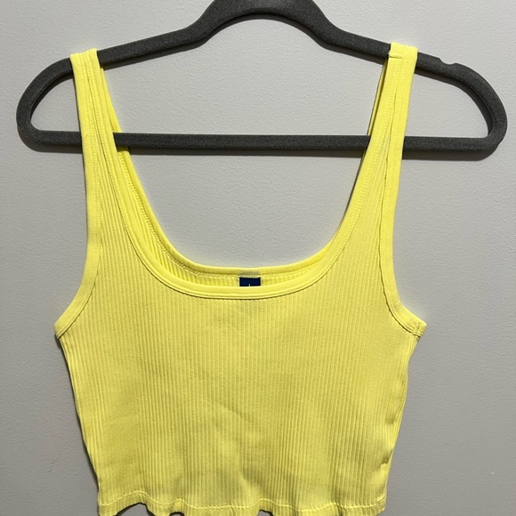 Brighten your wardrobe with this vibrant yellow ribbed tank top. Perfect for casual outings and layering.