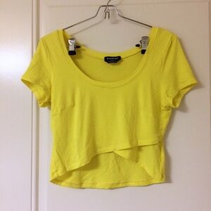 Yellow Crossover Cross Front Hem Crop Top Tee