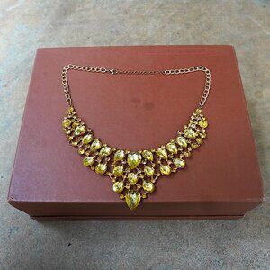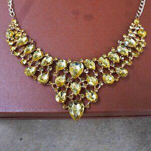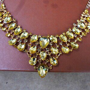 NWOT, Bib Necklace, Choker, Collar Necklace, Costume Jewelry, Yellow Crystal, Citrine, Rhinestone, Teardrop, Gold Tone, Prom, Wedding, Formal, Party, Pageant, Evening Wear, Glam, Y2K, Aesthetic
