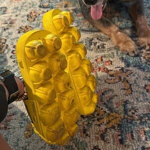 Yellow Egg Carton Slide Sandals Omega Mart Well worn