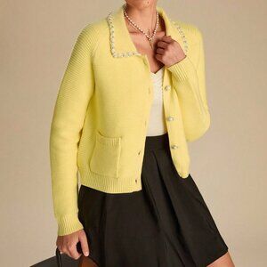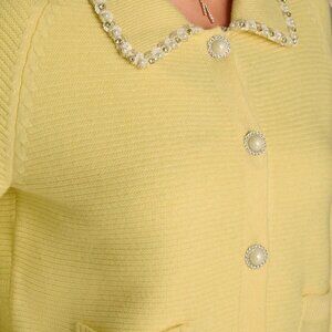 Yellow Elegant Women's Beaded Sequin Cardigan Sweater