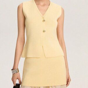 Yellow Elegant Womens V-Neck Sleeveless Top And Contrast Maxi Skirt Set