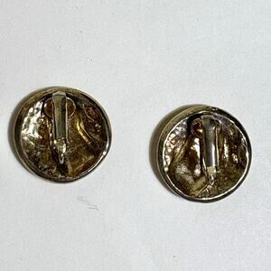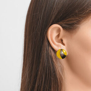 Yellow Enamel and Gold Tone Vintage Earrings, Retro 80s Circle Clip On Statement