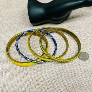 Yellow Enameled and Blue Cloisonné Bracelet Set