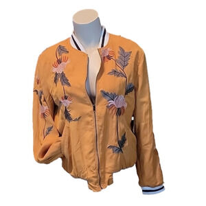 Yellow Floral Embroidered Solstice Bomber Jacket Zip