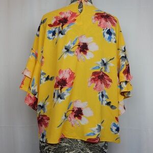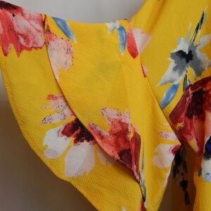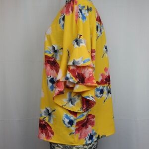 Yellow Floral Halogen Ruffle Sleeve Blouse Large