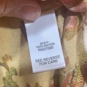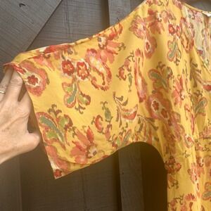 Yellow Floral Paisley Print Maxi Dress Bohemian Drawstring Rayon Womens Medium