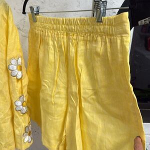Yellow Floral Embroidered Linen Shorts Set - Daisy Long Sleeve Small - NWT