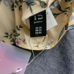 Yellow shirt with blue flowers. the shoulder is spagetti strap with low cuffs. Never worn.