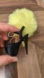 Yellow Fluffy Pom Pom Keychain with Black Platform High Heel Charm
