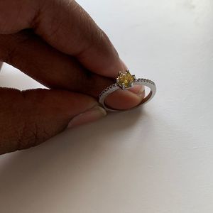 Yellow Gemstone Ring w/ Side CZs