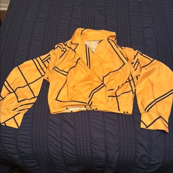 SOLERSUN Striped Print Wrap Collar Blouse (Stylish black and yellow ) For New Year Clothes,Thin Long Sleeve Tops
