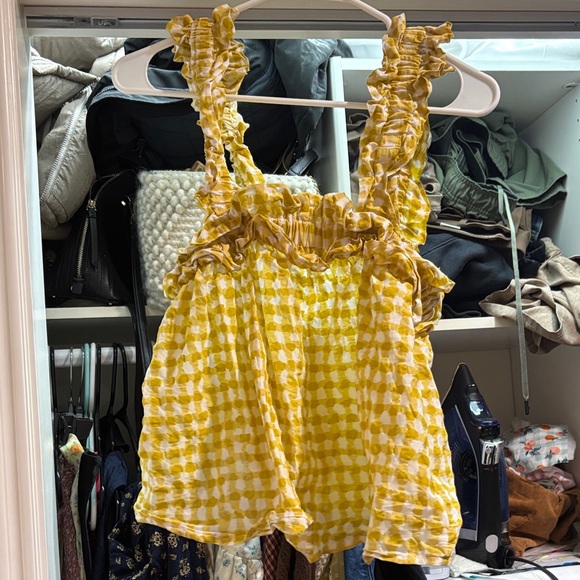 Yellow Gingham Ruffle Top