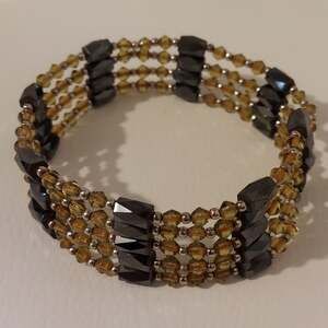 Yellow Glass and Lodestone Magnetite Beads Adjustable Bracelet