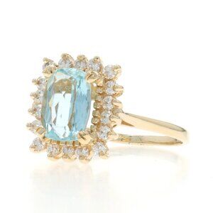 Yellow Gold Aquamarine Diamond Halo Ring - 14k Cushion 2.63ctw
