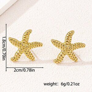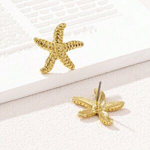 Yellow Gold Boho Women's Geometric Pearl & Starfish Stud Earrings