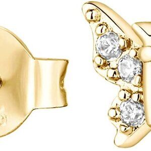 Features: These 6mm wide and 5mm tall butterfly studs are crafted with 14K yellow gold plating and feature dazzling AAAAA cubic zirconia stones. Perfect for adding a charming detail to any outfit or for second piercing. Easy to wear with push back closures.