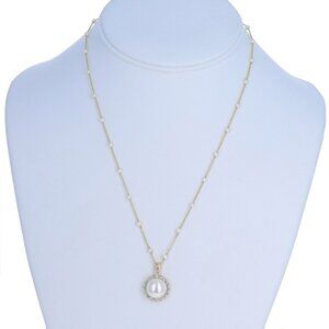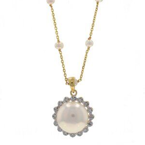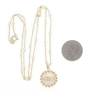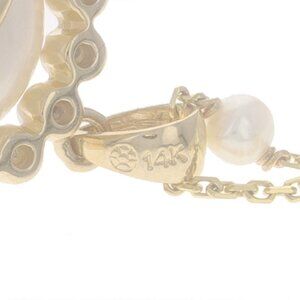 Yellow Gold Cultured Freshwater Pearl Station Pendant Necklace 18" 14k Floral