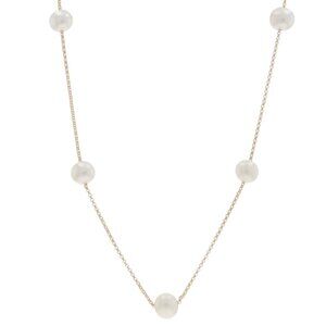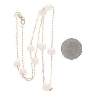 Yellow Gold Cultured Freshwater Pearls Station Necklace 18" 14k