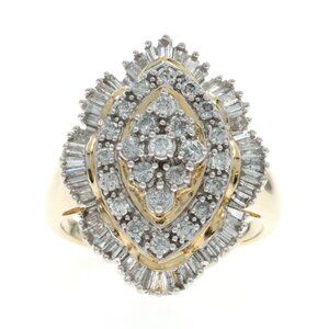 Yellow Gold Diamond Cluster Cocktail Ring 10k Baguette Round 1.50ctw