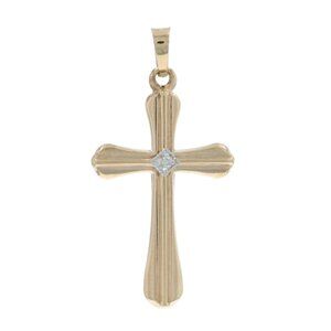 Yellow Gold Diamond Cross Pendant 14k Single 1.00 Faith Solitaire
