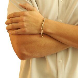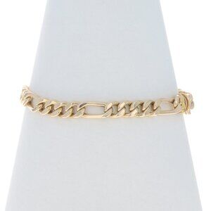 Yellow Gold Diamond Cut Figaro Chain Men's Bracelet 8" 14k