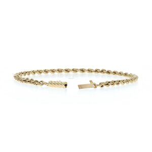 Yellow Gold Diamond Cut Rope Chain Bracelet 7" 14k