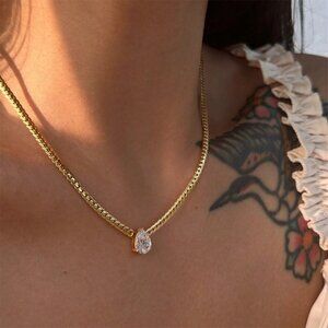 Yellow Gold Fantasy Womens Teardrop Stainless Steel Rhinestone Pendant Necklace