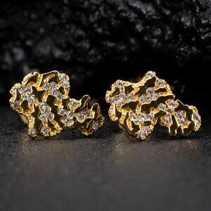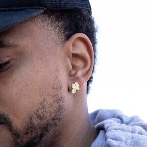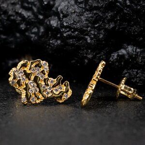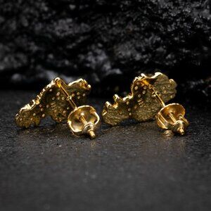 Yellow Gold Plated 925 Sterling Silver Nugget Hip Hop Men's Screw Back Earrings