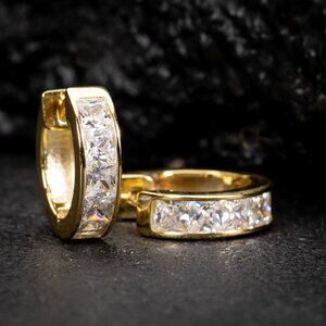 Yellow Gold Plated 925 Sterling Silver Square Princess Cut Huggie Hoop Earrings