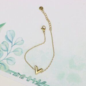 Elegant yellow gold plated bracelet crafted from high-quality brass, featuring a bold V-shaped charm and an adjustable fit for versatile styling.