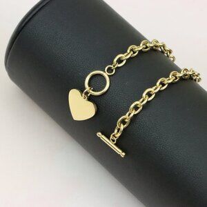 "Yellow Gold Plated Heart Charm Bracelet, 18cm Adjustable Chain, XPBL0603
