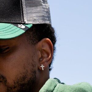 The hip hop style cross studs for men are adorned with 5A cz stones, meticulously hand set to provide a dazzling display of brilliance that will turn heads wherever you go. These aren't just any regular men’s earrings, but a true testament to your fashion sense.