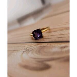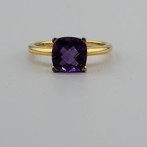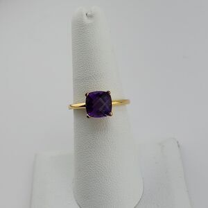 Yellow Gold Plated Sterling Silver Square Created Amethyst Solitaire Ring 7