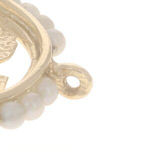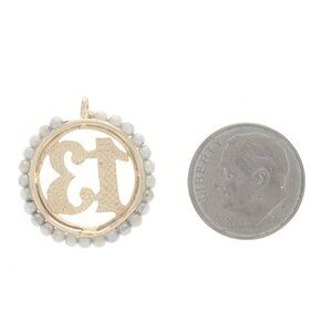 Yellow Gold Simulated Pearl Vintage 13 Charm -14k Lucky Number Birthday Pendant