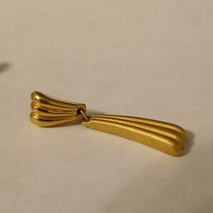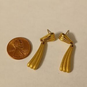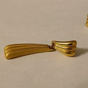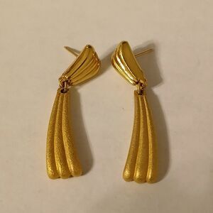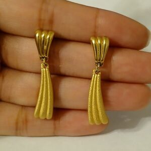 Yellow Gold Tone Chisled Etched Ribbed Statement Retro Dangle Earrings