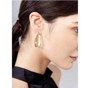 Yellow Gold Tone Irregular Shape Hoops Off White Filling