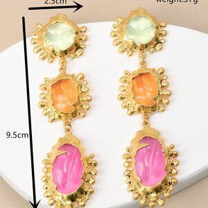Yellow Gold Vintage Women's Geo Asymmetrical Metal & Acrylic Pendant Earrings