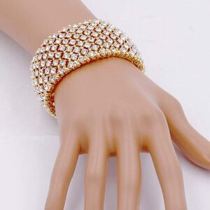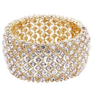 Brand New - Daring and Bold Round Cut Austrian Crystal Tennis Stretch Adjustable Bridal Wedding Party Bangle Bracelet