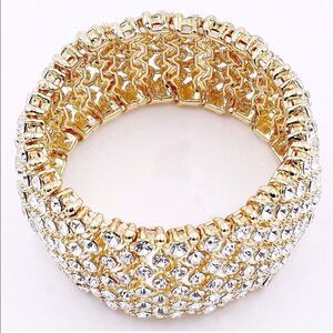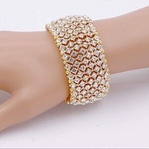Yellow Gold & White Diamond Austrian Crystal Tennis Stretchable Bracelet Bangle