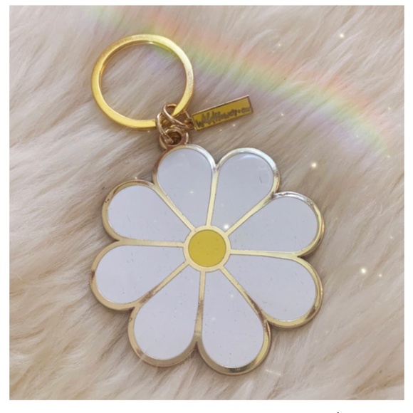 Yellow, Gold, White Metal Daisy Enamel Keychain Wildflower & Co, boho, nice size