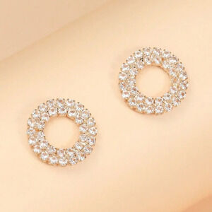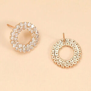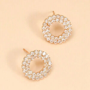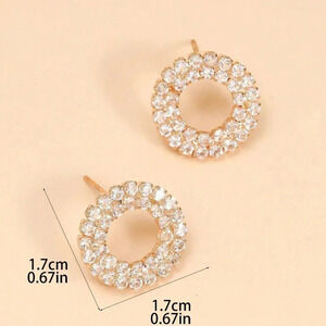 Yellow Gold Women's Elegant Geometric Circle Shaped Rhinestone Stud Earrings