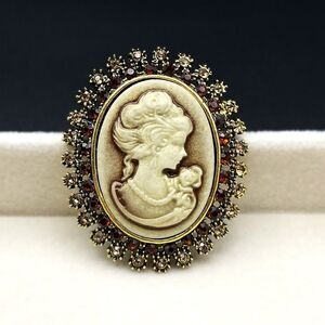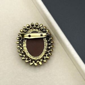 Yellow Gold and Brown with Champagne Crystal Victorian Cameo Pin Back Brooch