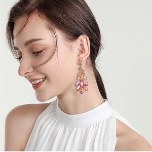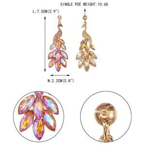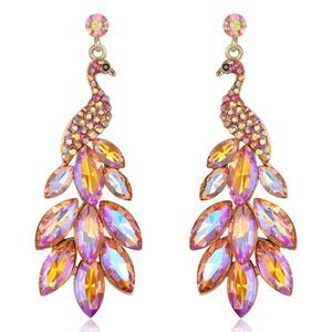 Yellow Gold and Pink Iridescent AB Austrian Crystal Peacock Chandelier Earrings