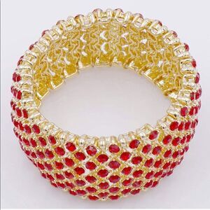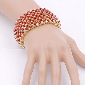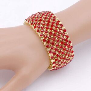 Yellow Gold and Ruby Red Austrian Crystal Tennis Stretchable Bracelet Bangle