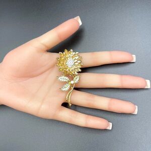 Yellow Gold with Champagne Topaz and Diamond Crystal Sunflower Pin Back Brooch