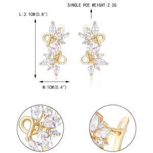 Yellow Gold with White Diamond Cubic Zirconia French Clip Post Flower Earrings