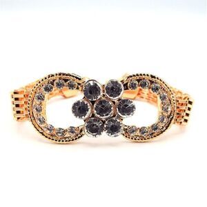Brand New - Yellow Gold Bracelet Embellished with 2 Circles and a Center Flower Adorned with White Diamond Crystals