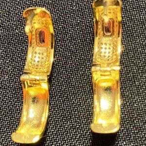 These yellow gold-toned huggie earrings by Stella Rose feature an emerald cut center stone that adds a touch of elegance to any outfit. These stylish earrings hug the earlobe and are made of high-quality materials, making them a sophisticated and trendy accessory for any occasion. Perfect for those who appreciate unique and eye-catching jewelry pieces, these earrings are a must-have for any fashion-forward individual.